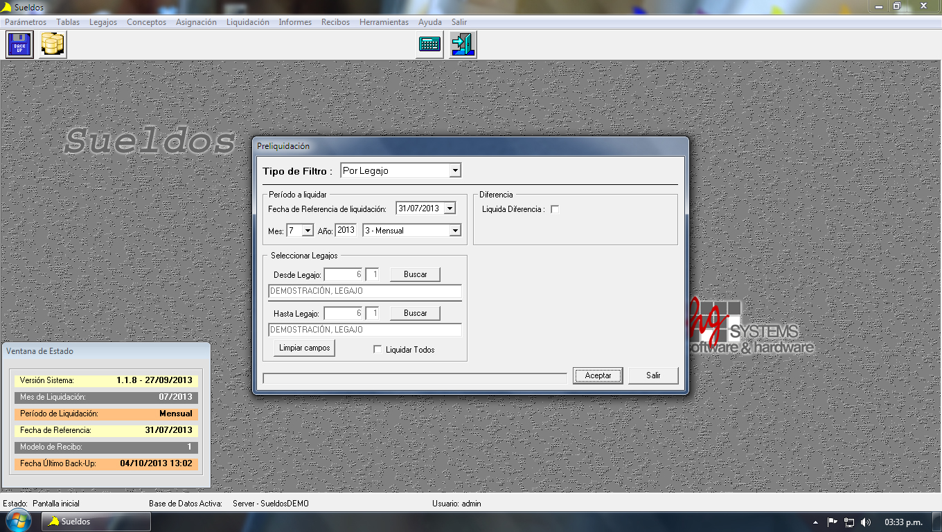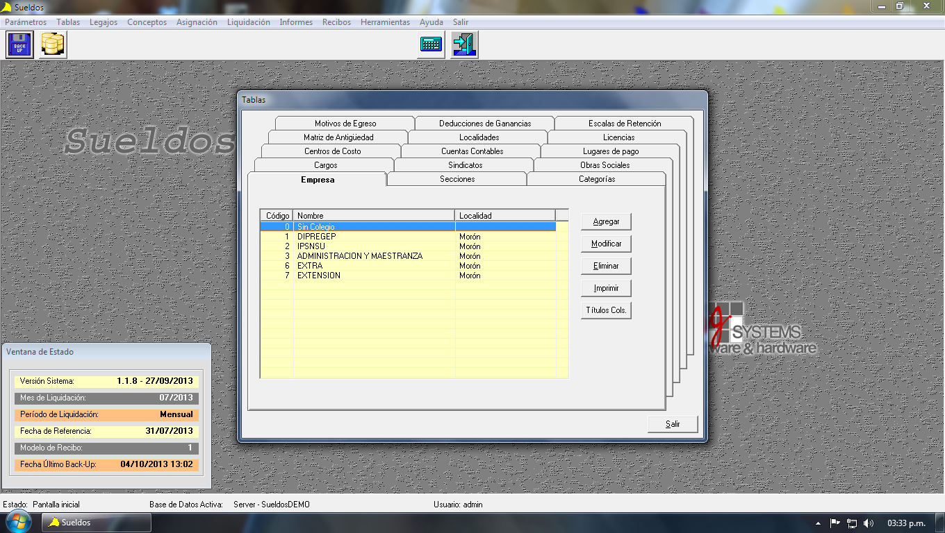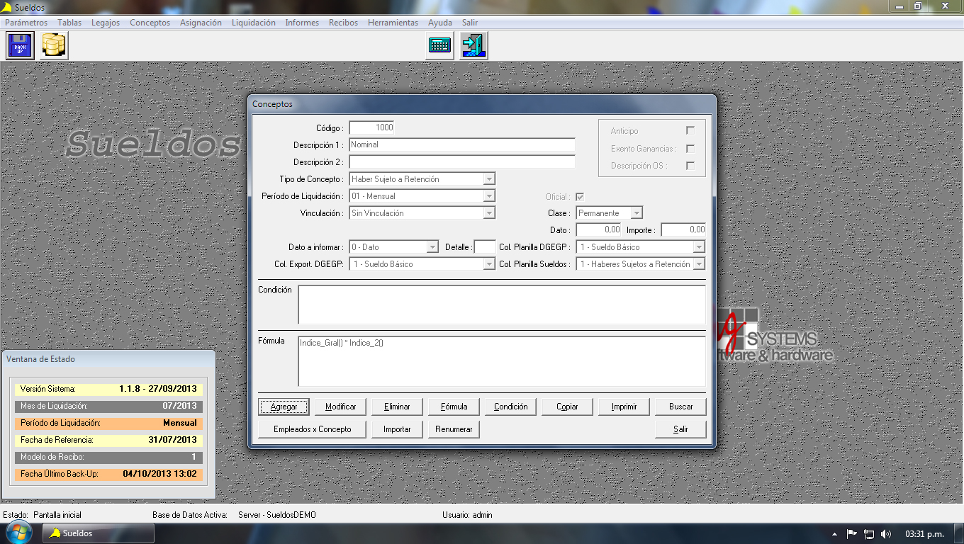 * El Sistema se entrega con bases predefinidas para las jurisdicciones de CABA y Provincia de Buenos Aires que incluyen: Tablas (Matriz de Antigüedad, Categorías, Cargos, Obras Sociales, Deducciones de Ganancias y Escalas de Retención). Y todos los conceptos necesarios con sus respectivas fórmulas.